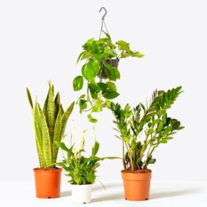 Unkillable Plants Set (Sansevieria, Zz Plant, Peace Lily, Hanging Money Plant)