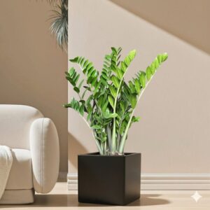 Zamioculcas Zamiifolia, Zanzibar Gem or ZZ Plant in Ceramic Pot
