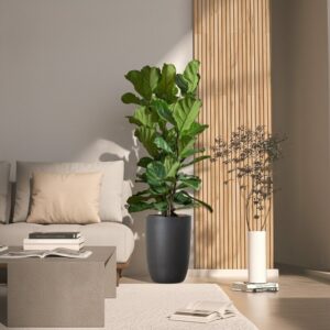 Ficus Lyrata 1.0-1.3m "Fiddle Leaf Fig" in Black Ceramic Pot