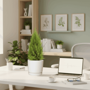 Cupressus Macrocarpa, Goldcrest Wilma, Lemon Cyperus in Ceramic Pot