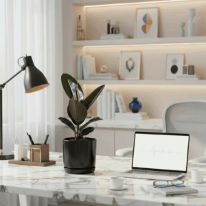 Ficus Elastica “Abidjan” (Rubber Plant) 30-40cm in Ceramic Pot
