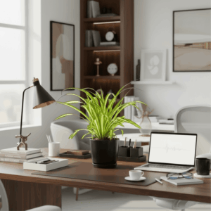 Spider Plant or Air Plant (Chlorophytum Comosum 'Variegatum') in Ceramic Pot