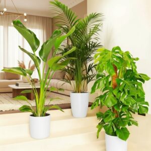 Bestseller Plants Bundle (Areca Palm 1.1-1.2m, Monstera Deliciosa 1.0-1.3m, Strelizia Nicolai 1.0-1.3m) in White Ceramic Pot