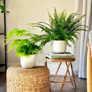 Fern Pair (Boston Fern 20-25cm, Asparagus Fern 20-30cm) in white ceramics pot