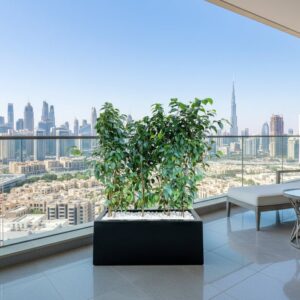 Ficus Banjamina Trio in Rectangular Fiber Glass Planter (GRP) (70x30x30cm)
