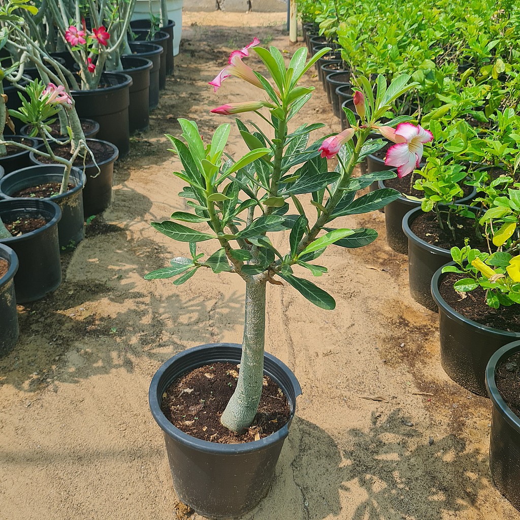 Adenium obesum, more commonly known as a desert rose, is a poisonous species of flowering plant belonging to the tribe Nerieae of the subfamily Apocynoideae of the dogbane family, Apocynaceae