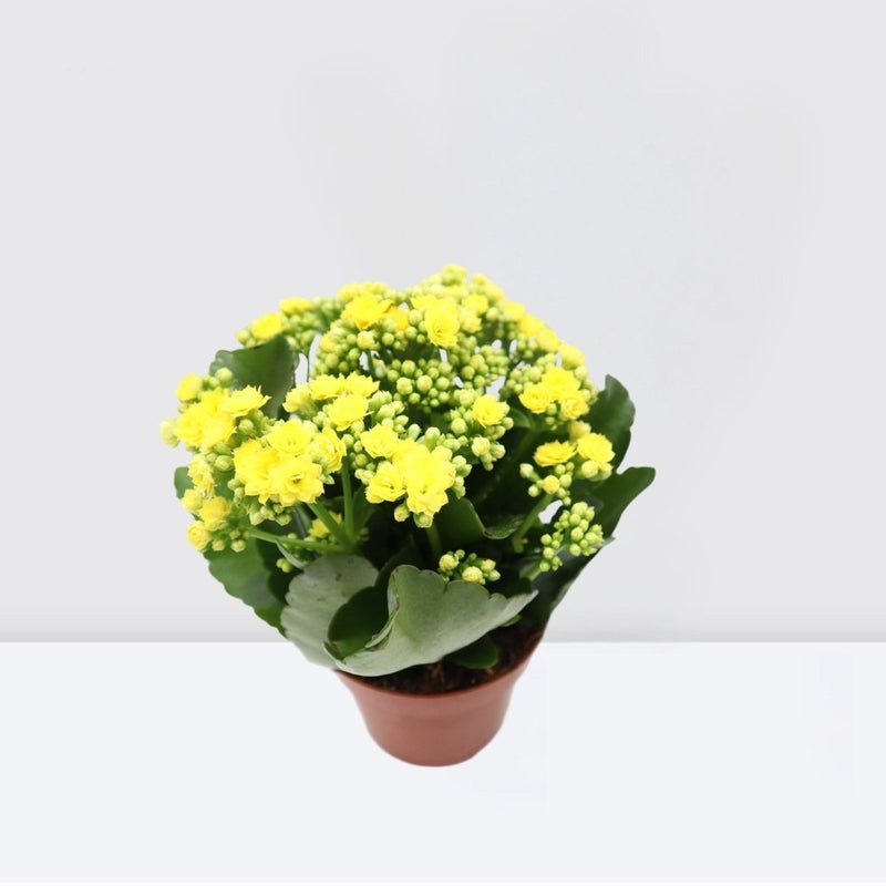 Kalanchoe blossfeldiana also known as flaming Katy, Christmas kalanchoe or florist kalancho. Native to Madagascar. Kalanchoe blossfeldiana is evergreen and perennial succulent plant. The plant has green, shiny and textured glossy foliage, which stays green all year round. Deliverable