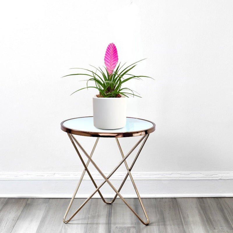 Tillandsia Cyanea Pink Quill is a member of the bromeliad family of air plants and gets its name from the plume of bright pink bracts that last for months. Arching, narrow green leaves grow in a rosette with flower spikes appearing in summer. Its pink bracts are densely overlapping, with violet-blue flowers emerging for a brief show.